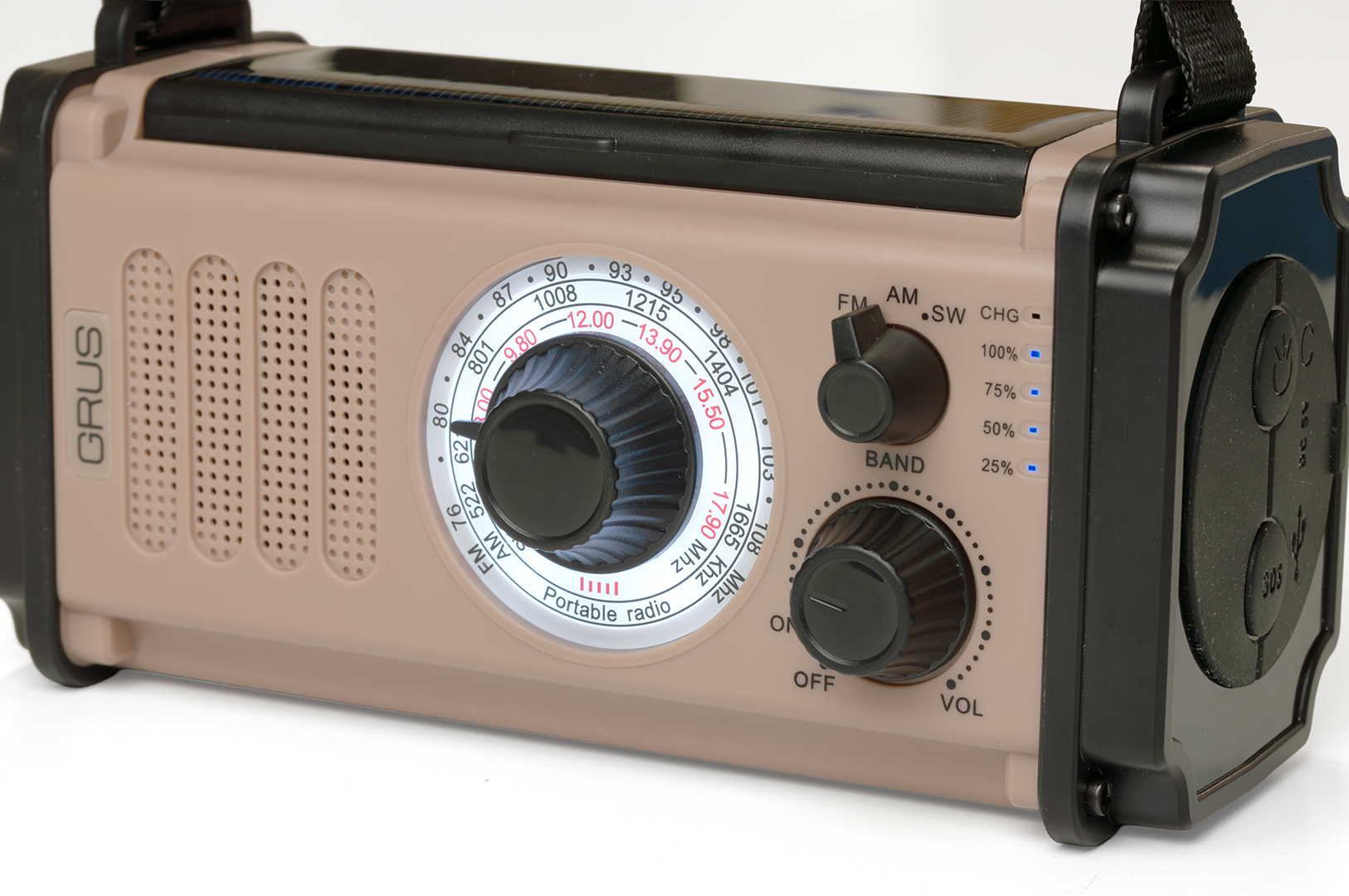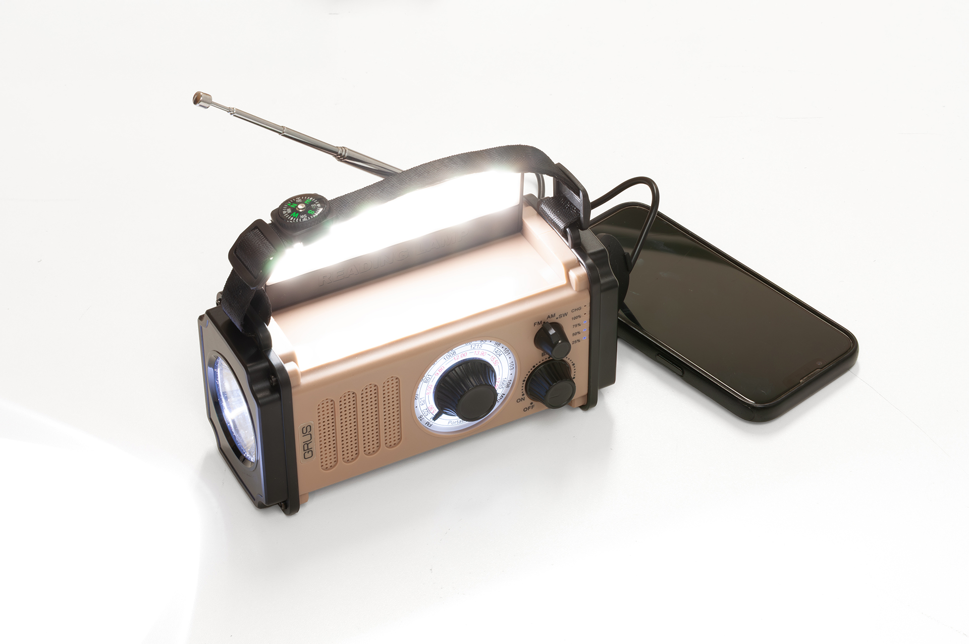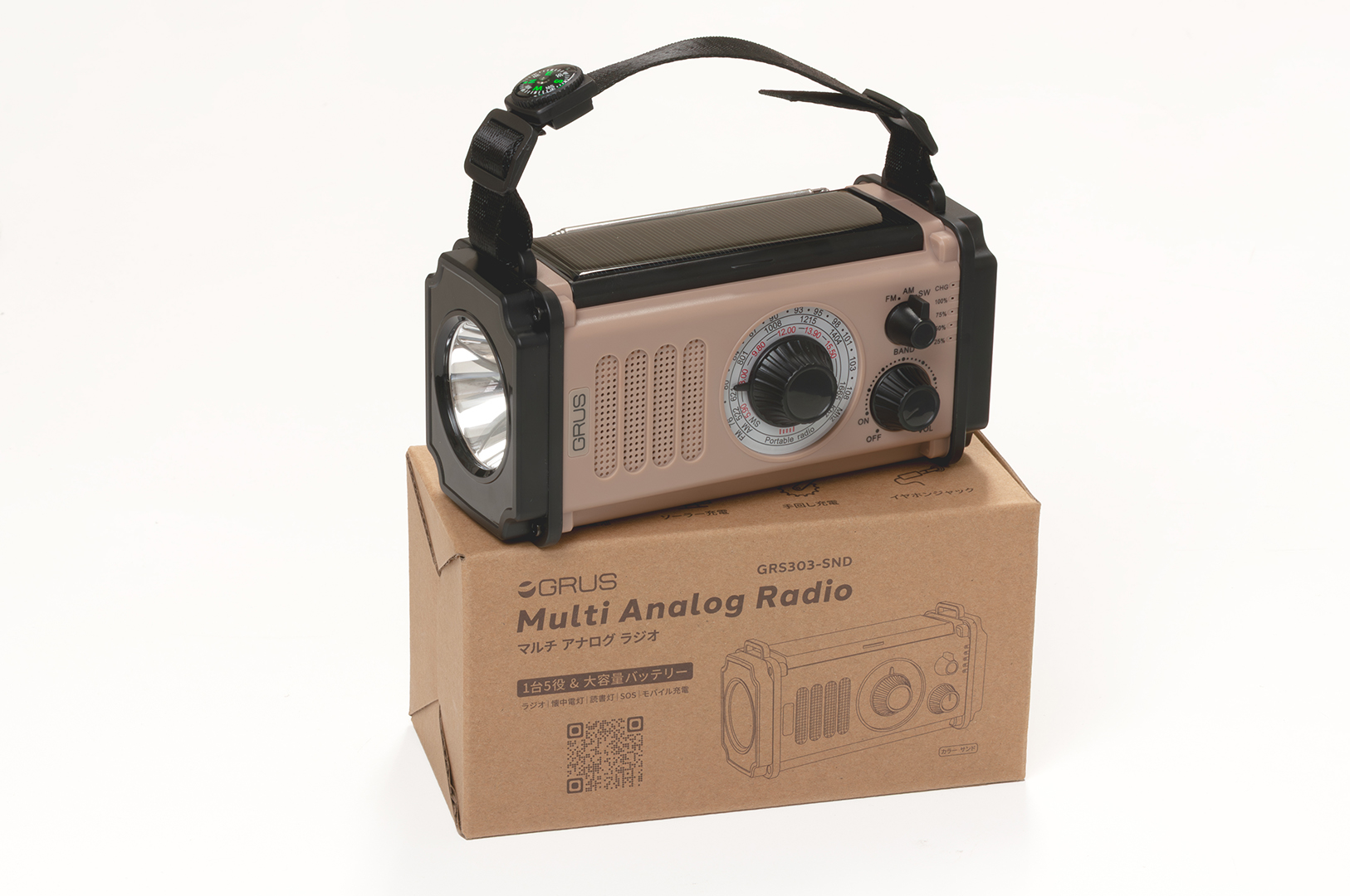 GRUS(グルス) マルチアナログラジオ《GRS303-SND》は、災害時の備えにも、日常の暮らしにも自然に馴染む、1台5役の多機能ラジオです。 インテリアに調和する落ち着いたサンドカラーと、直感的に使える昔ながらのダイヤル操作を採用し、あらゆる世代にとって扱いやすい設計となっています。 FM/AM/短波(SW)ラジオに加え、高輝度LEDの懐中電灯・読書灯、SOSアラート、スマートフォン充電機能などを搭載。防災グッズとしての機能性と、暮らしに寄り添うデザイン性を両立しています。